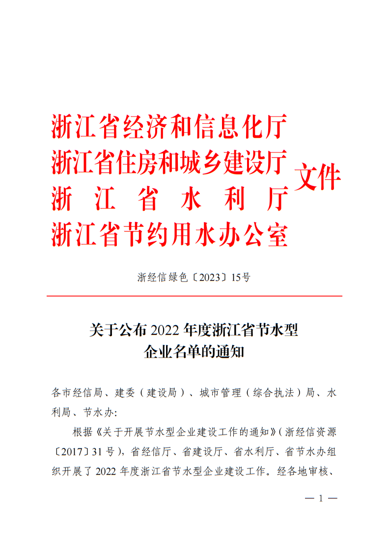 2022年浙江省節(jié)水型企業(yè)名單1